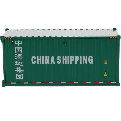 Brand new 1/50 scale model of 20′ Dry Goods Sea Container “China Shipping” Green “Transport Series” model by Diecast Masters.Brand new box.Detailed exterior.True-to-scale detail.Has opening rear doors.Officially licensed product.This model is made of plastic.Manufacturer’s original unopened packaging.Dimensions approximately: L-4.75, W-2, H-2 inches.Compatible with 1/50 scale Skeleton Trailer by Diecast Masters.