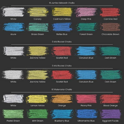 - 10 Jumbo Chalk Sticks, 5 Mid Bullet Chalks, 5 Mid Rocket Chalks, Game Guide
