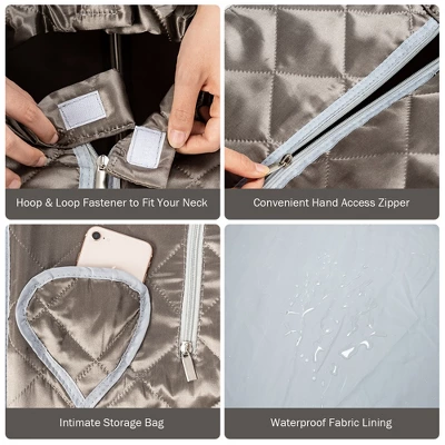 - Waterproof fabric prevents heat loss and is easy to wipe and dry