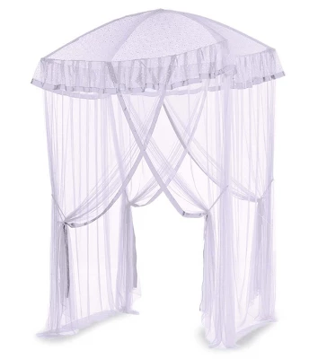 - Includes a string of 30 LED lights attached to the top interior of the canopy (three AA batteries required, not included)