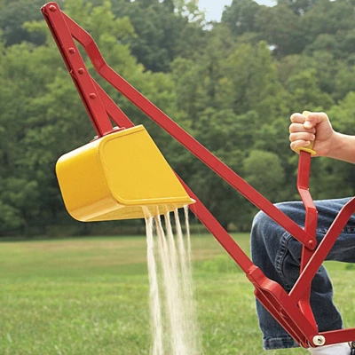 Now, even the youngest excavators can really move the earth with this sensational digging machine that reaches over four feet to scoop up mounds of sand, and rotates 360º to unload. The sturdy steel sand digger features a wide, tip-resistant base with a comfy, contoured, adjustable-height seat that supports up to 70 lbs. Comfortable, easy-grip dual hand controls help children develop hand-eye coordination while they dig and dump for hours. This backyard toy is perfect for inspiring imaginative and pretend-play.